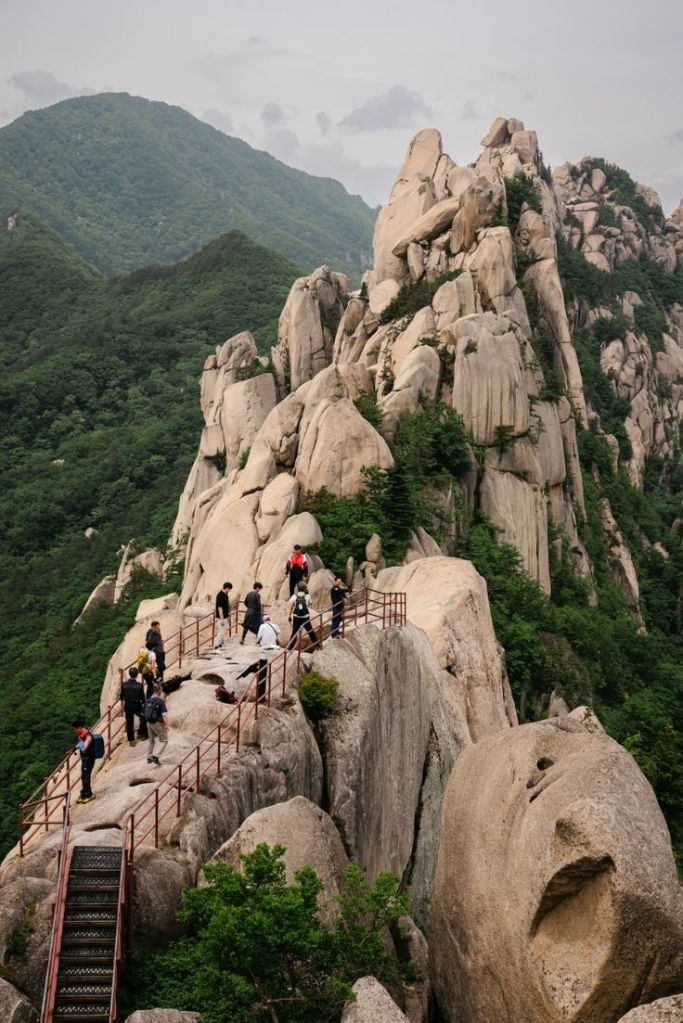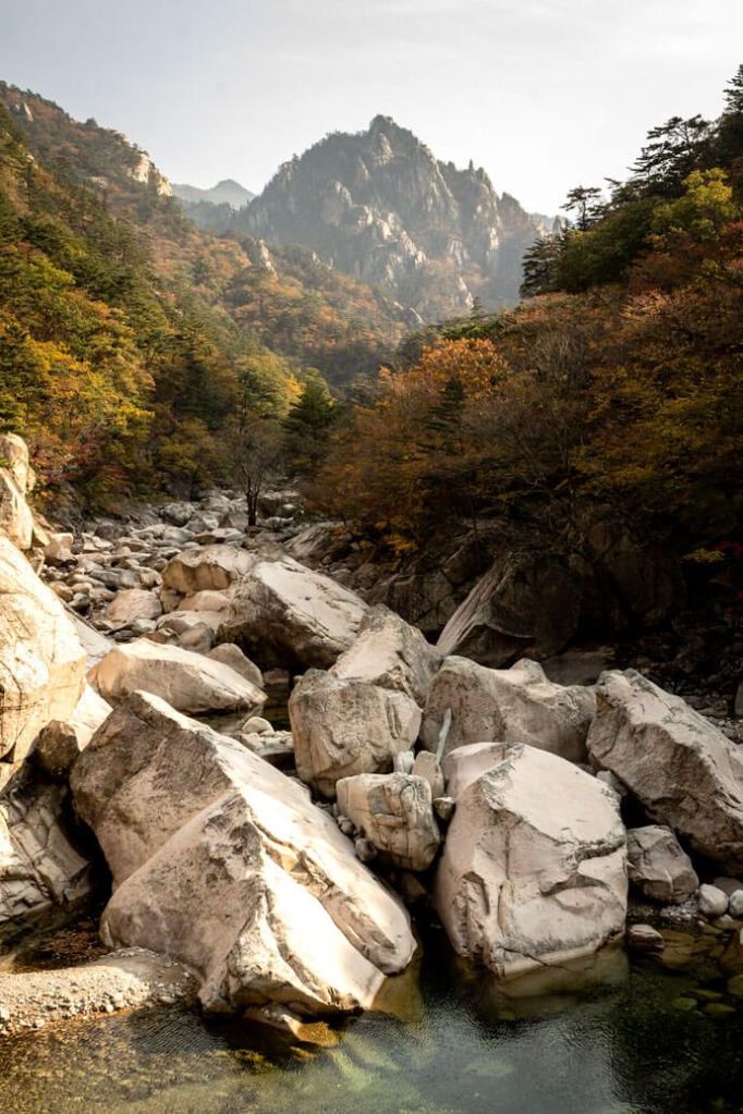Le parc national de Seoraksan est classé au patrimoine mondial de l’UNESCO. Il est l’un des plus beaux parcs de Corée du Sud. Ses sommets escarpés offrent un défi pour les randonneurs. Ses vallées profondes attirent ceux qui cherchent la tranquillité. Ses rivières cristallines enchantent les amoureux de la nature. Les saisons y offrent des spectacles variés. Les cerisiers en fleurs apparaissent au printemps. Le vert éclatant s’affiche en été. Les couleurs flamboyantes se montrent en automne suivi du manteau neigeux en hiver.